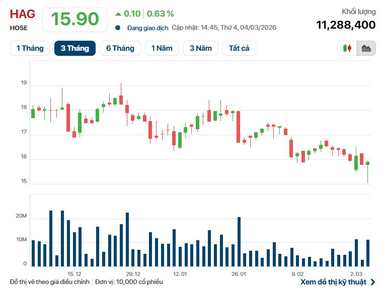 Kết phiên giao dịch ngày 4/3, thị giá của HAG là 15.900 đồng/cp, giảm 16% so với vùng đỉnh 19.000 đồng/cổ phiếu thiết lập hồi cuối năm 2025, ước tính Bầu Đức sẽ phải chi ra khoảng 80 tỷ đồng để hoàn tất thương vụ này.