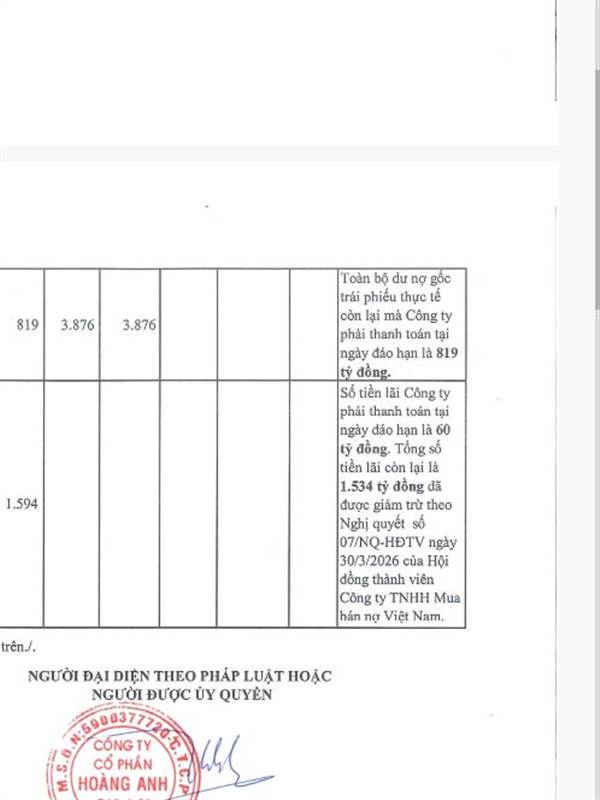 Công ty Cổ phần Hoàng Anh Gia Lai công bố CBTT tình hình thanh toán gốc, lãi trái phiếu 2016 tại ngày đáo hạn như sau: