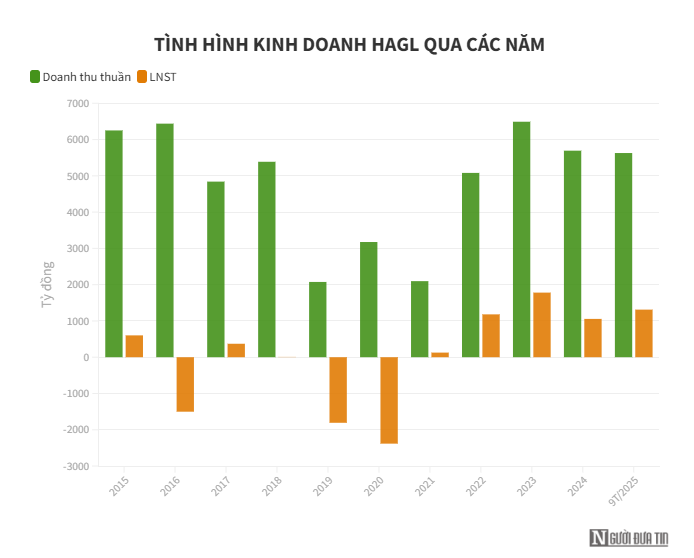 Bức tranh kinh doanh của HAGL trong năm 2025 cũng phần nào phản ánh hiệu quả của chiến lược mới. Riêng quý III/2025, HAGL ghi nhận doanh thu thuần đạt 1.895 tỷ đồng, tăng 32% so với cùng kỳ năm trước.