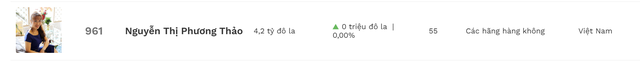Với khối tài sản này, CEO Vietjet xếp vị trí 961 trong danh sách tỷ phú thế giới và đứng thứ 2 trong số các doanh nhân Việt Nam sở hữu tài sản tỷ USD, sau Chủ tịch Vingroup Phạm Nhật Vượng.