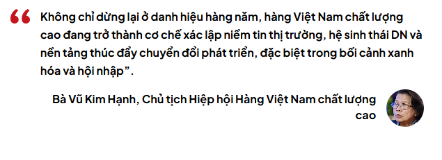 Ở chiều ngược lại, 42 DN lần đầu đạt danh hiệu “Hàng Việt Nam chất lượng cao” phản ánh một thế hệ mới. Họ tập trung vào sản phẩm hữu cơ, sinh học, tích hợp ESG (môi trường - xã hội - quản trị), đầu tư vận hành đa kênh và minh bạch thông tin.