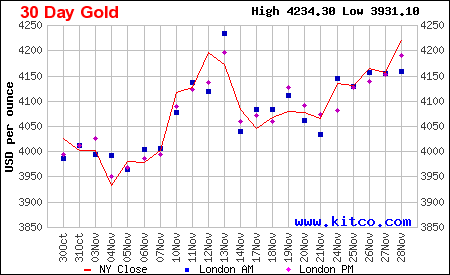 Biểu đồ giá vàng thế giới 30 ngày qua. (Ảnh: kitco.com)