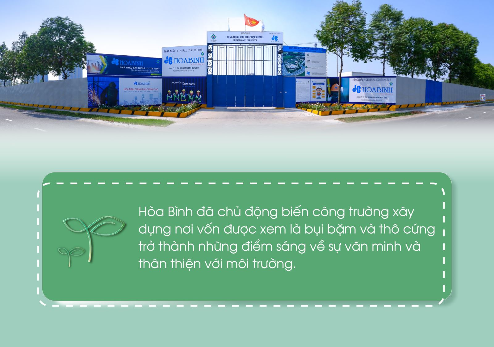 Ngày nay, khi thế giới nói nhiều về "Net Zero" hay "Công trình xanh", Hòa Bình nhìn lại hành trình của mình và thấy những dấu ấn tiên phong đã hiện hữu từ rất sớm. Không đơn thuần là việc tuân thủ các quy định môi trường, Hòa Bình đã chủ động biến công trường xây dựng nơi vốn được xem là bụi bặm và thô cứng trở thành những điểm sáng về sự văn minh và thân thiện với môi trường.