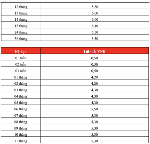 Kỳ hạn có lãi suất cao nhất là 18 tháng (6,10%/năm), mang lại khoản lãi 9,15 triệu đồng.