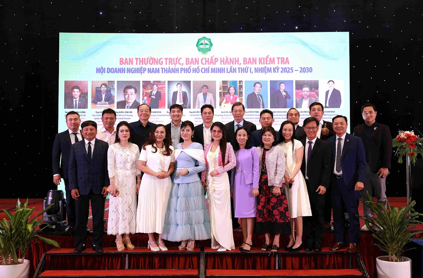 Phó Tổng Giám đốc HODECO Ông Đoàn Hữu Hà Vinh (hàng thứ hai, ngoài cùng bên trái) cùng Ban chấp hành SHBA nhiệm kỳ 2025 - 2030 ra mắt Đại hội
