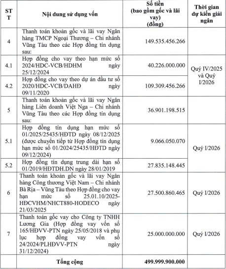 Theo Hodeco, do thời gian chào bán trái phiếu kéo dài hơn so với dự kiến nên công ty đã sử dụng nguồn vốn từ hoạt động sản xuất kinh doanh, nguồn vốn khác để thanh toán một số khoản nợ ngân hàng đã đến hạn trả nợ trong quý III/2025 và quý IV/2025 có trong phương án đã được phê duyệt.