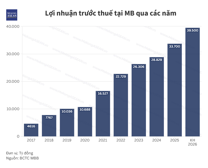 Trong quản trị vận hành, MB đặt mục tiêu doanh thu từ kênh số đạt 60% và năng suất lao động tăng thêm khoảng 15% nhờ đẩy mạnh tự động hóa và ứng dụng AI. Về quản trị rủi ro, ngân hàng hướng tới kiểm soát tỷ lệ nợ xấu toàn tập đoàn dưới 1,5% (riêng ngân hàng dưới 1%), đồng thời duy trì tỷ lệ bao phủ nợ xấu ở mức 100%.