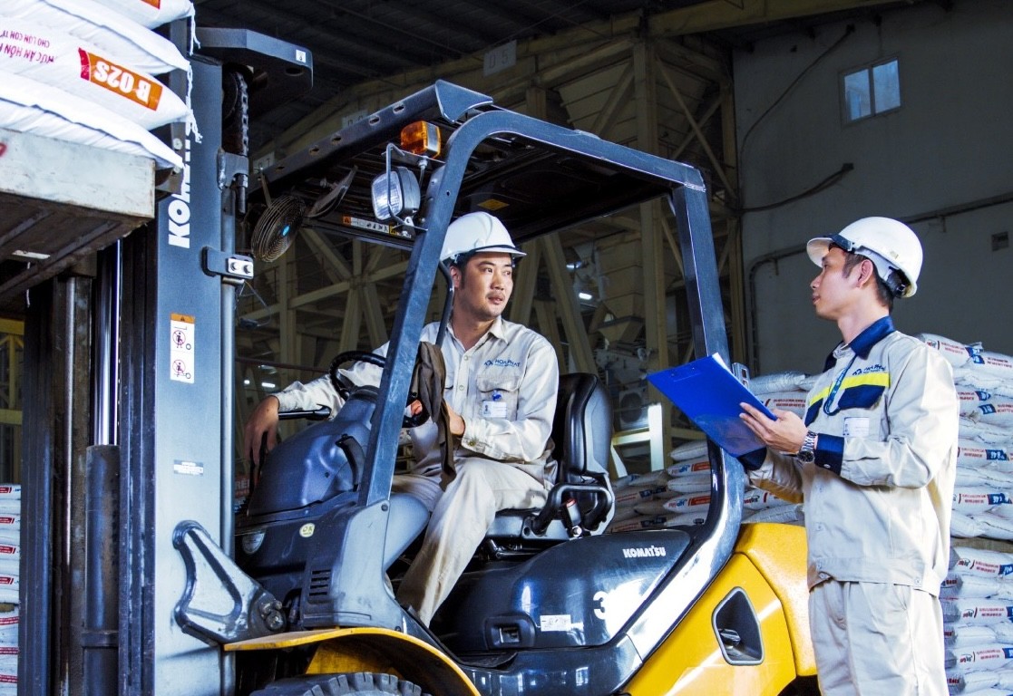 Công nhân tại nhà máy thức ăn chăn nuôi của Nông nghiệp Hoà Phát. Ảnh: HPA
