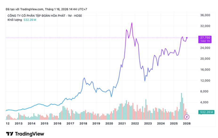 Câu chuyện hiện tại đã khác, về phía cầu chắc chắn tăng mạnh nhờ đầu tư công và các dự án hạ tầng được đẩy mạnh không chỉ trong năm 2026, mà cả giai đoạn 2026-2030. Về phía cung, Hòa Phát đã đón đầu chu kỳ bằng dự án Dung Quất 2, bắt đầu ghi nhận từ quý 4-2025.