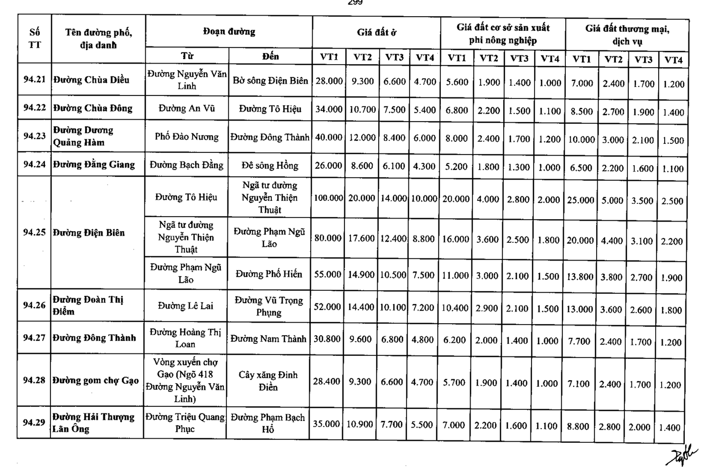 Nhiều tuyến phố trung tâm khác cũng ghi nhận mức điều chỉnh mạnh như: Hồ Xuân Hương lên 56 triệu đồng/m2 (tăng 5,6 lần), Đoàn Thị Điểm 52 triệu (tăng 5,2 lần), Chu Mạnh Trinh 55 triệu (tăng 5 lần) và Chùa Chuông 55 triệu đồng/m2 (tăng 3,7 lần).