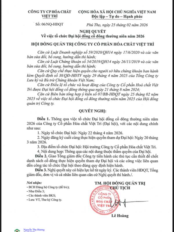 HVT: Nghị quyết Hội đồng quản trị