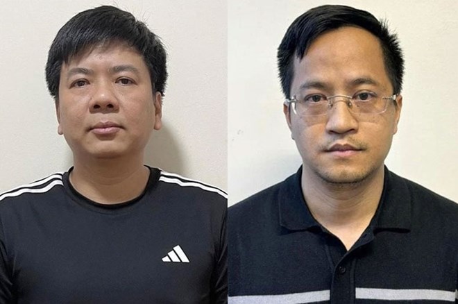 Shark Thủy và cấp dưới Đặng Văn Hiển (từ trái qua). Ảnh: Bộ Công an