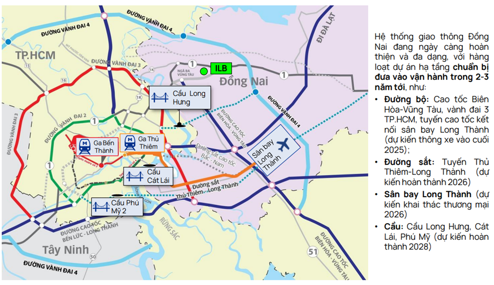 Với vị trí đắc địa của ILB gần các tuyến giao thông huyết mạch, VCSC kỳ vọng việc hạ tầng tiếp tục phát triển tại tỉnh Đồng Nai sẽ hỗ trợ kết nối vùng và thúc đẩy nhu cầu cho các dịch vụ của ILB trong thời gian tới.