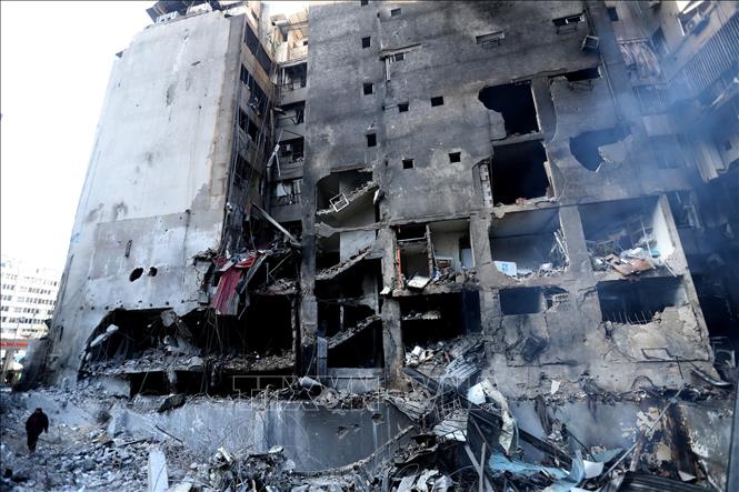 Tòa nhà bị phá hủy sau cuộc không kích của Israel tại Beirut, Liban. Ảnh: THX/TTXVN
