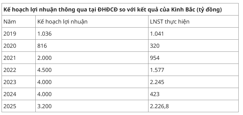 Theo thống kê của Mekong ASEAN, lần gần nhất Kinh Bắc hoàn thành kế hoạch lợi nhuận là năm 2019. Điều này đồng nghĩa doanh nghiệp đã 6 năm liên tiếp không đạt chỉ tiêu lợi nhuận đề ra.