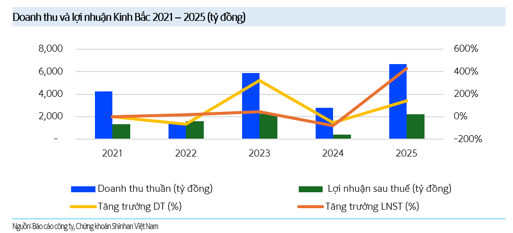Tổng Công ty Phát triển Đô thị Kinh Bắc (KBC) là một trong những doanh nghiệp hàng đầu trong lĩnh vực phát triển các dự án khu công nghiệp và bất động sản. Kinh Bắc sở hữu các dự án trên cả ba miền tại các thành phố lớn như Bắc Giang, Hải Phòng, Đà Nẵng, Hồ Chí Minh, Long An. KBC ghi nhận kết quả kinh doanh tăng trưởng bứt phá trong năm 2025, với doanh thu và lợi nhuận cải thiện mạnh so với cùng kỳ. Tuy nhiên, trong bối cảnh bất ổn về thuế quan và rủi ro địa chính trị gia tăng, công ty vẫn chưa hoàn thành kế hoạch đã đề ra cho năm.