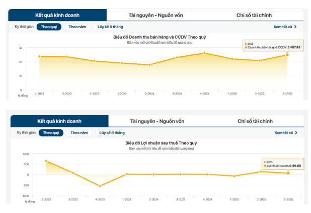 Tại thời điểm 30/9/2025, tổng tài sản đạt 13.074 tỷ đồng, giảm 3% so với đầu năm; lượng tiền và tương đương tiền giảm từ 1.352 tỷ đồng xuống 607 tỷ đồng. Tổng nợ vay ở mức 5.797 tỷ đồng, tăng 6%.