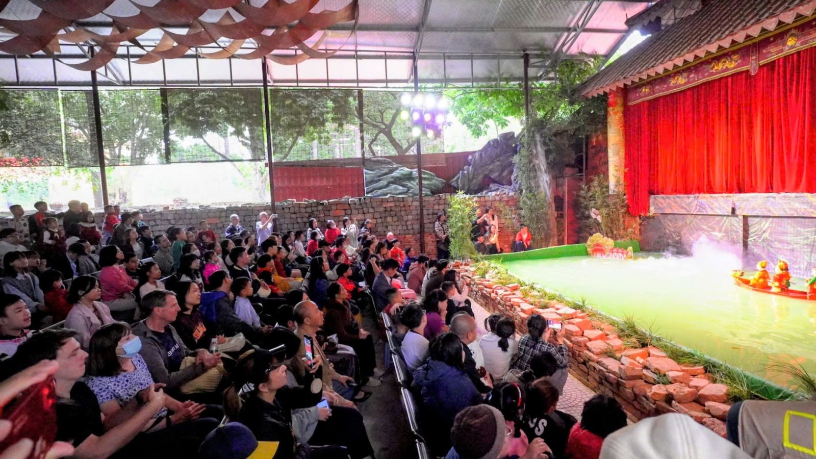 Du khách xem múa rối tại Hoàng thành Thăng Long trong dịp Tết Nguyên đán Bính Ngọ. Ảnh: H.L