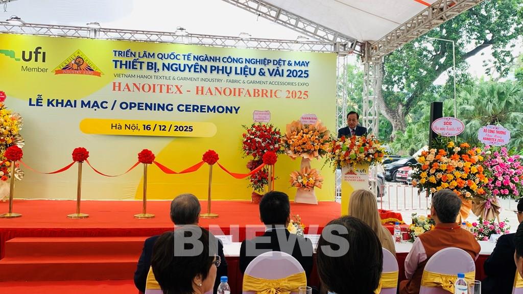 Triển lãm quốc tế dệt và may, thiết bị, nguyên phụ liệu và vải 2025 (HanoiTex & HanoiFabric 2025) đã được khai mạc vào sáng 16/12, tại Hà Nội.