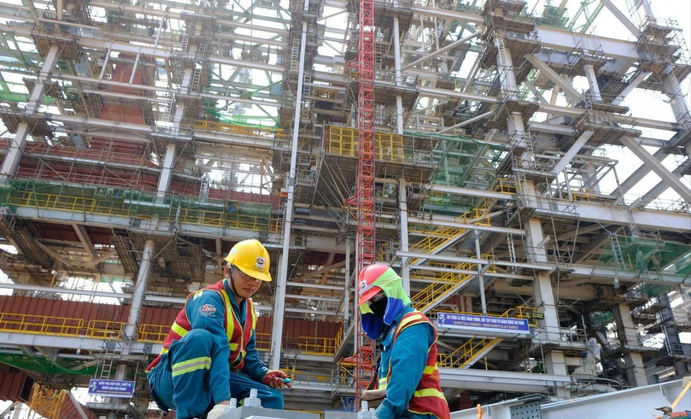 Công nhân thi công tại Nhà máy Nhiệt điện Quảng Trạch 1.