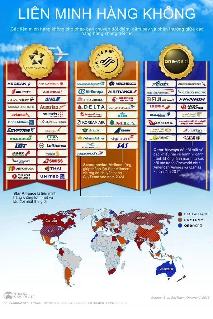 Star, SkyTeam và Oneworld không chỉ giúp thuận tiện cho các chuyến đi đường dài có nối chuyến mà còn thưởng cho khách hàng thân thiết bằng điểm và dặm bay có thể quy đổi.