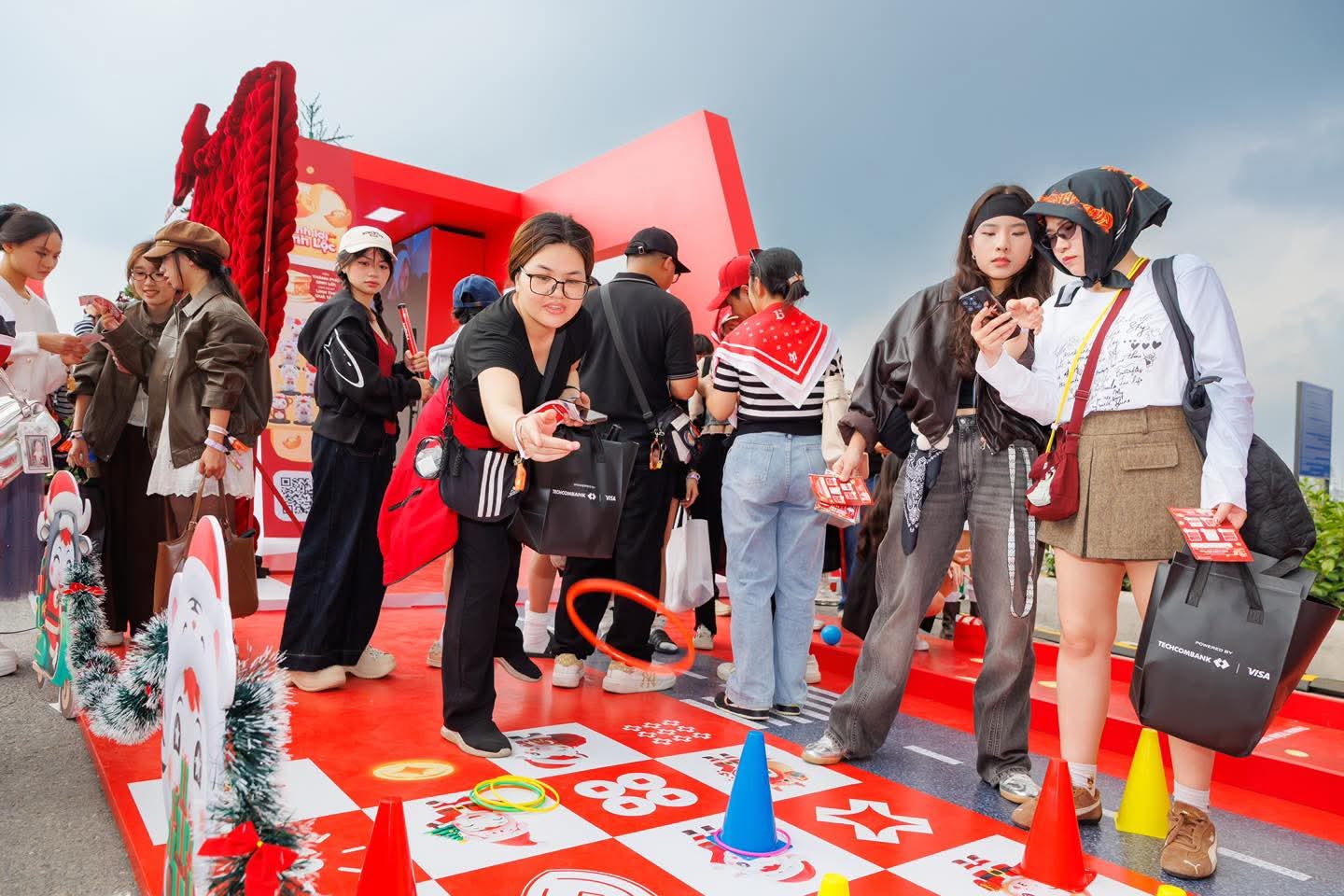 Người hâm mộ chơi game nhận quà tặng của Techcombank tại concert Anh trai vượt ngàn chông gai. Ảnh: Techcombank