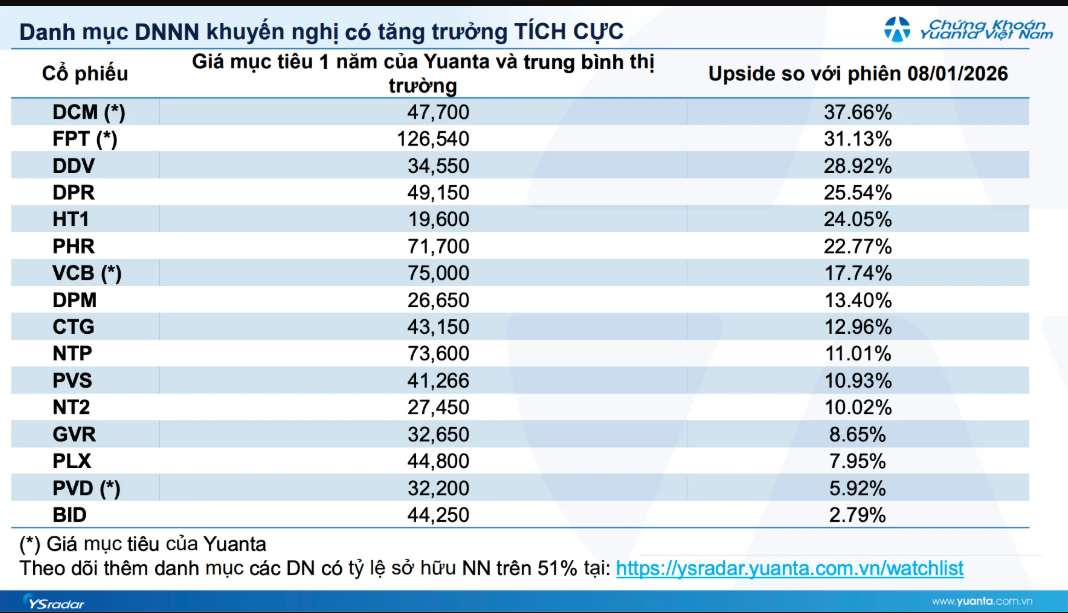 Danh mục cổ phiếu doanh nghiệp Nhà nước được khuyến nghị có tăng trưởng tích cực của YSVN