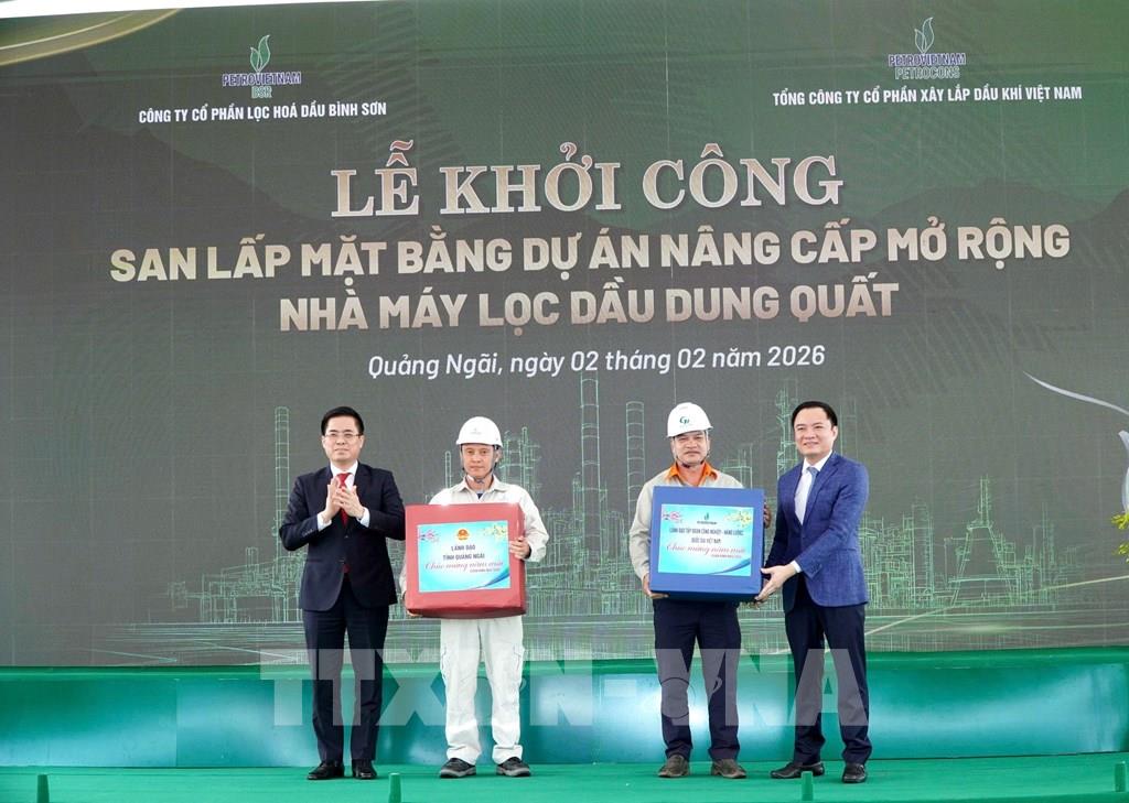 Ngày 2/2, Khu Kinh tế Dung Quất (Quảng Ngãi), Công ty cổ phần Lọc hóa dầu Bình Sơn (BSR) phối hợp cùng nhà thầu tổ chức Lễ khởi công san lấp mặt bằng Dự án nâng cấp mở rộng Nhà máy lọc dầu Dung Quất.