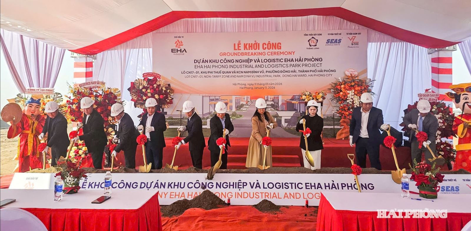 Sáng 11/1, tại khu công nghiệp Nam Đình Vũ, Công ty CP Phát triển công nghiệp EHA Hải Phòng (EHA Industrial) tổ chức khởi công Dự án khu công nghiệp và logistics EHA Hải Phòng.