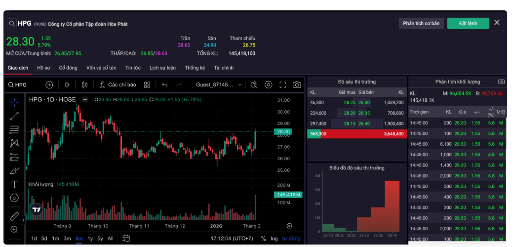 Trong bức tranh ảm đạm đó, cổ phiếu HPG của Công ty Cổ phần Tập đoàn Hòa Phát bất ngờ trở thành điểm sáng hiếm hoi khi bứt phá mạnh mẽ, đi ngược hoàn toàn xu hướng chung của thị trường.