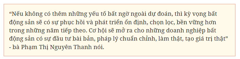 Thị trường phân hóa mạnh, ưu thế đặc biệt sẽ thuộc về các chủ đầu tư có quỹ đất sạch, năng lực tài chính mạnh, pháp lý minh bạch, sản phẩm phù hợp nhu cầu thực của thị trường cùng với khả năng thích ứng linh hoạt trước các thay đổi về chính sách, thị trường và hành vi khách hàng.