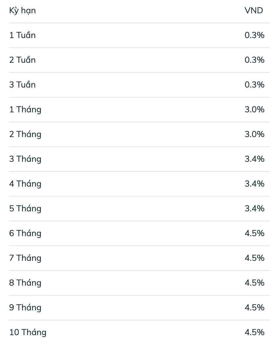 * Thông tin về lãi suất chỉ mang tính chất tham khảo và có thể thay đổi trong từng thời kỳ. Vui lòng liên hệ điểm giao dịch ngân hàng gần nhất hoặc hotline để được tư vấn cụ thể.
