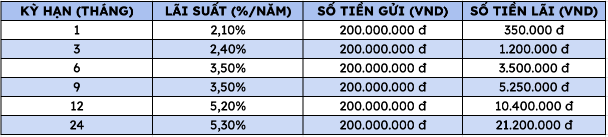 Gửi 200 triệu đồng tại Vietcombank nhận lãi bao nhiêu tại các kỳ hạn?