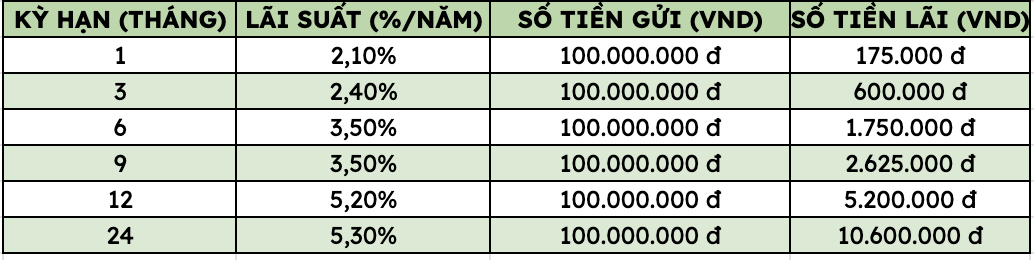 Gửi tiết kiệm 100 triệu đồng tại VietinBank nhận lãi bao nhiêu tại các kỳ hạn?