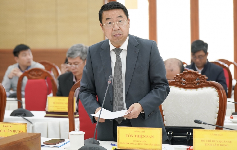 Giám đốc Sở Tài chính Tôn Thiện San báo cáo tình hình kinh tế tháng 1/2026 của tỉnh Lâm Đồng. Ảnh: H.T
