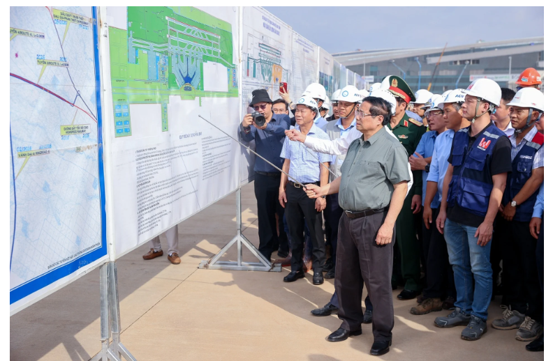 "Các chủ thể liên quan tiếp tục cố gắng, nỗ lực, quyết tâm hơn nữa để khẩn trương hoàn thành, đưa vào khai thác dự án sân bay Long Thành tầm cỡ quốc tế với hạ tầng kết nối thông suốt, phát triển kinh tế hàng không, hệ sinh thái hàng không theo chỉ đạo của Tổng Bí thư Tô Lâm", Thủ tướng nhấn mạnh.