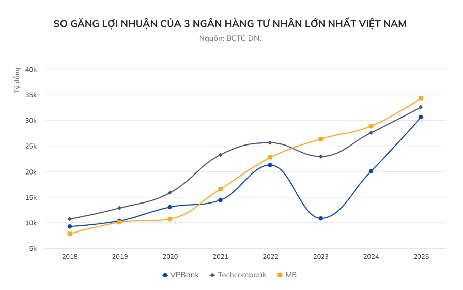 Năm 2026, VPBank và MB đặt mục tiêu lợi nhuận cao kỷ lục, mở rộng tín dụng và khách hàng, trong khi Techcombank tập trung kiểm soát thanh khoản và chuẩn bị lộ trình áp dụng chuẩn mực Basel III.