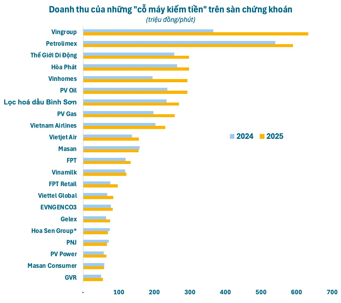 Hầu hết những “cỗ máy kiếm tiền” trên sàn chứng khoán đều có một năm 2025 bội thu, với doanh thu tăng trưởng mạnh, thậm chí cao kỷ lục.