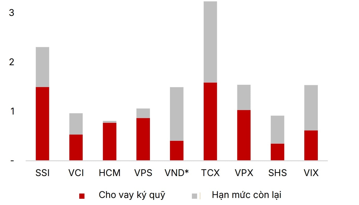 Dư nợ cho vay ký quỹ của một số CTCK. (ĐVT: tỷ USD; Nguồn: SSI Research)