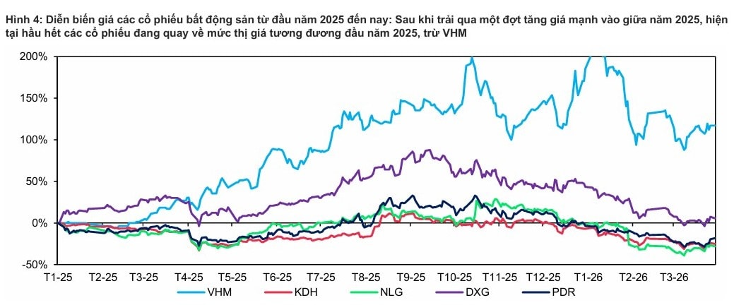 Trong quý I/2026, thị trường bất động sản nói chung và diễn biến các cổ phiếu bất động sản nói riêng có phần trầm lắng, chủ yếu do tác động của mặt bằng lãi suất cao và liên tục tăng.