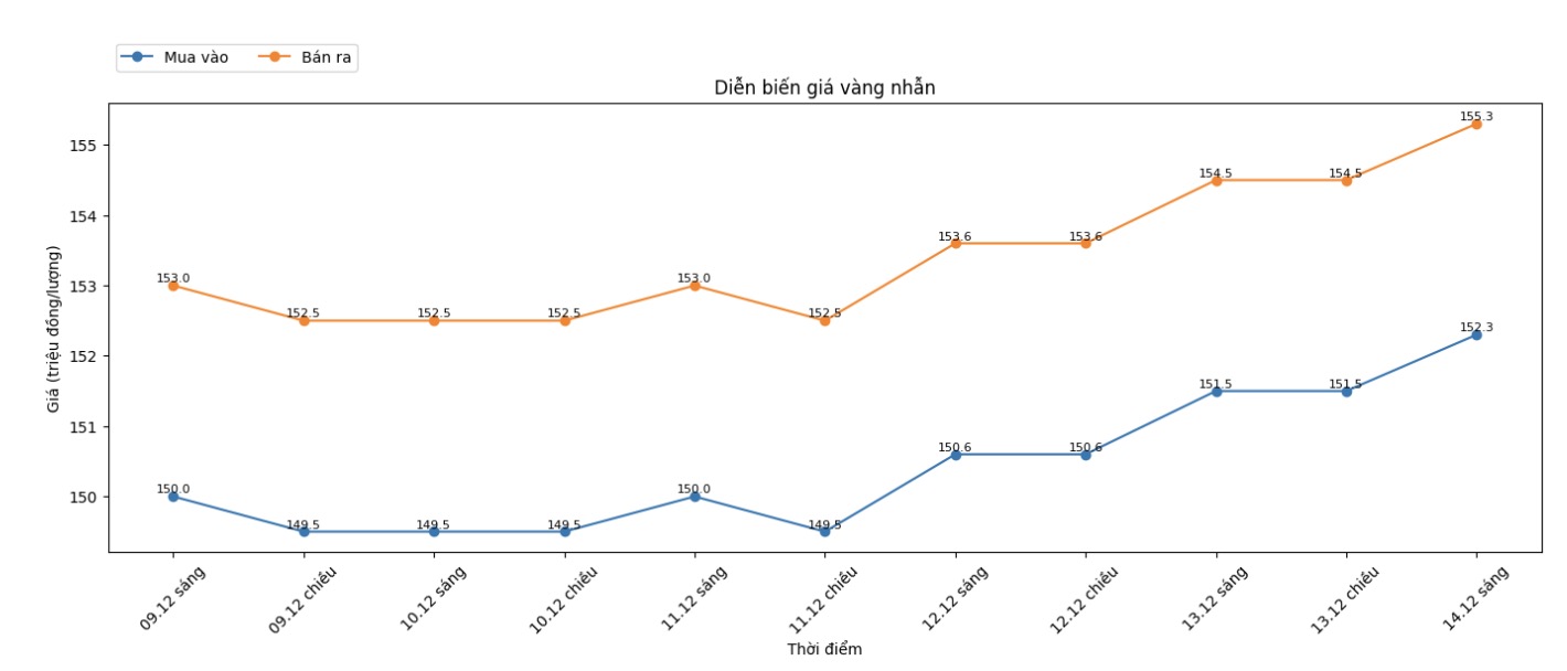 Kết quả là nếu mua vàng nhẫn từ phiên giao dịch ngày 7.12 và bán ra trong phiên 14.12, người mua tại nhiều doanh nghiệp vẫn lỗ từ 1,2 đến 1,5 triệu đồng/lượng, dù giá niêm yết nhìn bề ngoài vẫn đang đi lên.