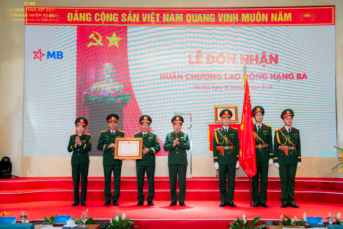 Chiều ngày 16/01/2026, tại tòa nhà MB Tower (Hà Nội), Hội nghị Quân chính năm 2025 và Đón nhận Huân chương Lao động Hạng Ba của Ngân hàng TMCP Quân đội (MB) đã diễn ra thành công tốt đẹp. Đại tướng Phan Văn Giang, Ủy viên Bộ Chính trị, Phó Bí thư Quân ủy Trung ương, Bộ trưởng Bộ Quốc phòng đến dự và chỉ đạo hội nghị.