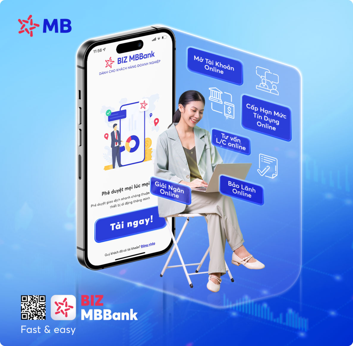 Các sản phẩm, dịch vụ tài chính mà MB cung cấp cho doanh nghiệp thông qua nền tảng số BIZ MBBank rất thuận tiện, có tính bảo mật, an toàn cao, thủ tục phê duyệt tín dụng trực tuyến nhanh chóng.