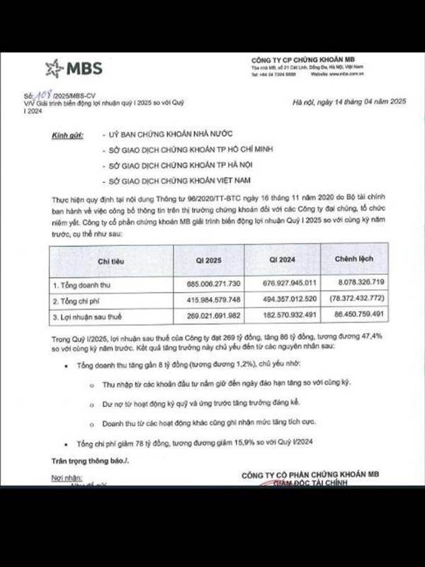 Trả lời cổ đông về vấn đề khả năng công ty phát hành thành công khi kinh tế đang khó khăn, Chủ tịch HĐQT Lê Viết Hải cho biết hiện MB đang sở hữu gần 77% vốn MBS, việc tăng vốn này chắc chắn MB Group là cổ đông lớn sẽ tham gia. Vì vậy khả năng thành công ở mức độ cao.