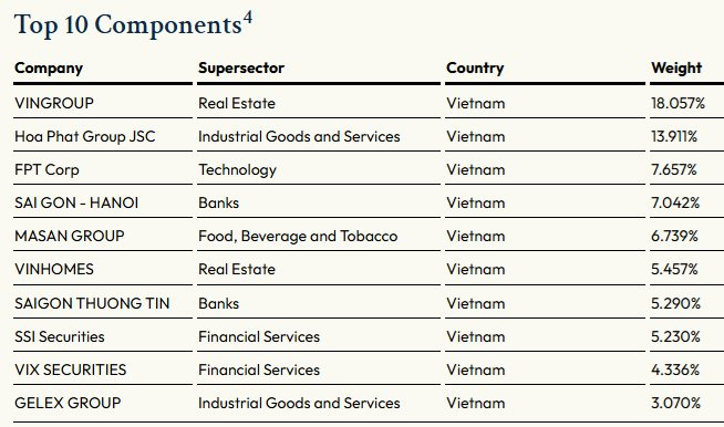 Chỉ số STOXX Vietnam Total Market Liquid được thiết kế để đo lường hiệu suất của các cổ phiếu có tính thanh khoản cao trên thị trường chứng khoán Việt Nam. Chỉ số này được phát triển và quản lý bởi STOXX Ltd. Kỳ review của chỉ số là vào tháng 3 và tháng 9 hàng năm. Tính đến cuối tháng 10, top cổ phiếu đứng đầu trong danh mục rổ STOXX Vietnam Total Market Liquid gồm VIC (18%), HPG (13,9%), FPT (7,7%), SHB (7%)…