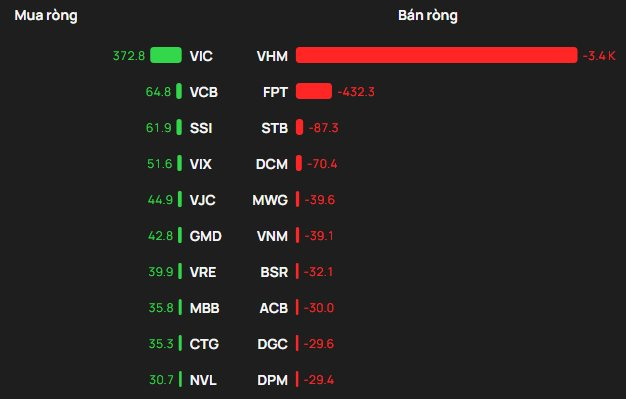 Ngược lại, VHM tiếp tục bị khối ngoại bán mạnh nhất với 3.400 tỷ đồng. Theo sau, các cổ phiếu FPT và STB cũng bị "xả" 432 tỷ đồng và 87 tỷ đồng.