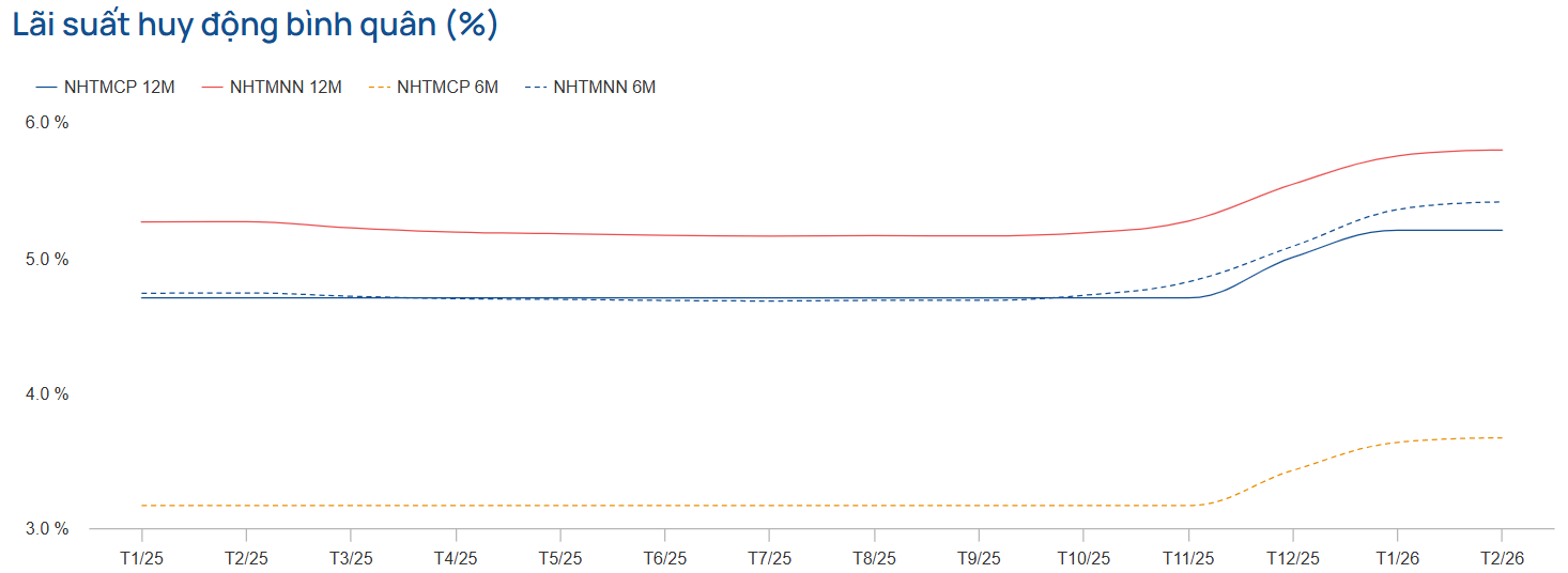 Lãi suất huy động duy trì đà tăng kể từ cuối năm 2025 (%)