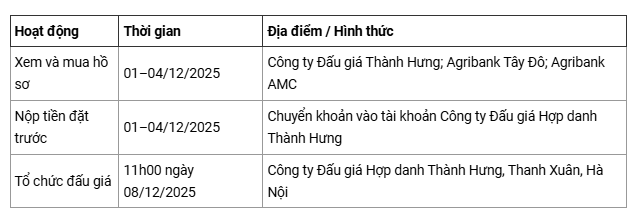 Khoản nợ được đấu giá theo nguyên trạng và theo phương thức "có sao bán vậy". Người tham gia đấu giá được khuyến cáo tự xem xét khoản nợ, tài sản bảo đảm và tự xác định chất lượng, số lượng, tình trạng pháp lý.