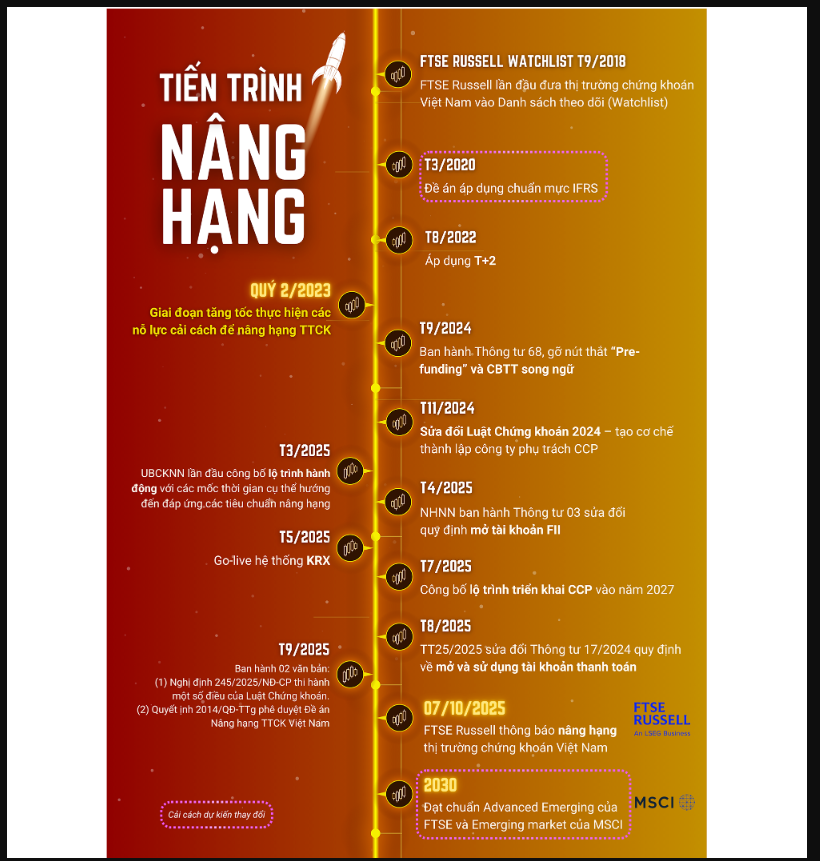 Sau khi KRX đi vào vận hành, đúng như dự báo, Việt Nam đã được FTSE Russell thông báo nâng hạng lên thị trường mới nổi thứ cấp vào đầu tháng 10. Lộ trình bao gồm một kỳ đánh giá tháng 3 trước khi chính thức có hiệu lực từ tháng 9/2026. Thành tựu này không chỉ thuộc về riêng ngành tài chính, mà còn là sự khẳng định mạnh mẽ vị thế mới của Việt Nam trên bản đồ đầu tư toàn cầu.