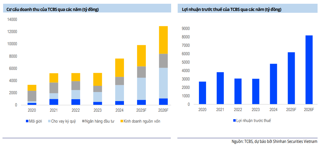 SSV dự phóng cơ cấu doanh thu và lợi nhuận trước thuế của TCB năm 2025–2026